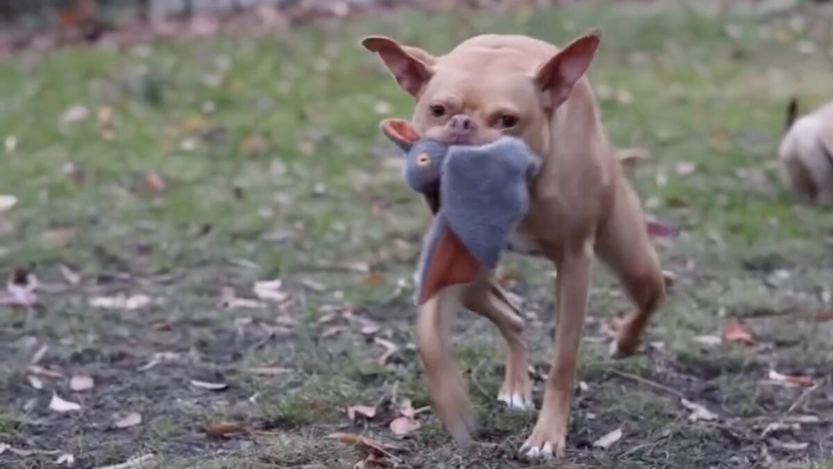 Wel eens zo'n gek hondje met zo'n gek speeltje gezien? Dieren