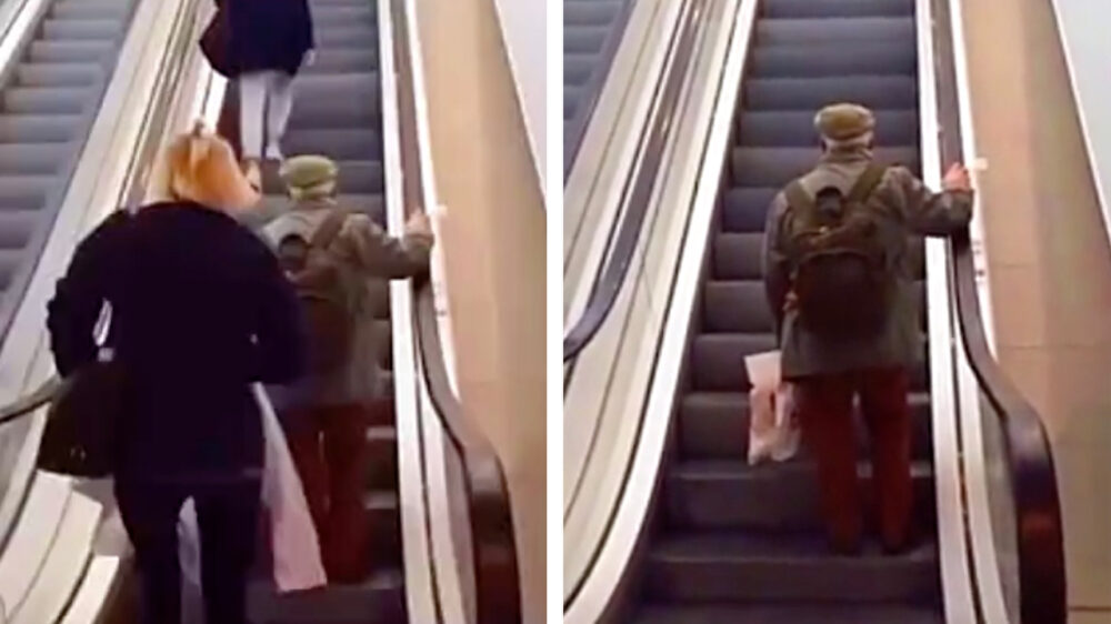Opa gaat voor het eerst met de langste roltrap ter wereld