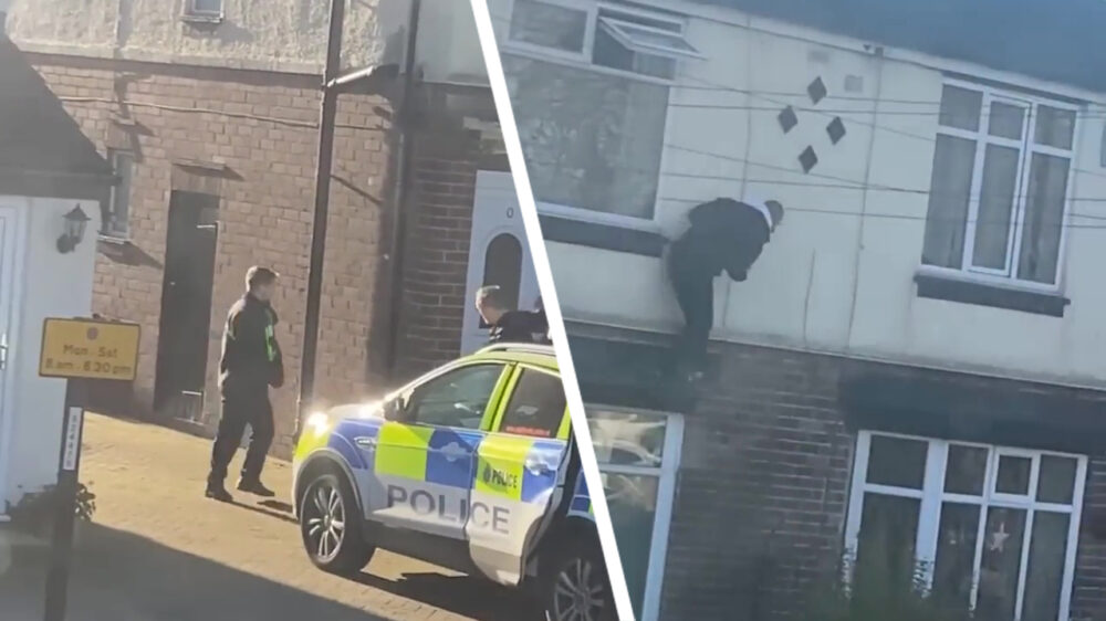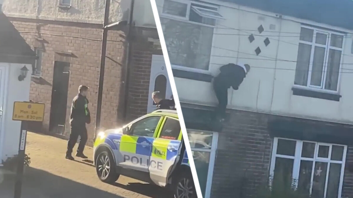 Toch altijd fijn als ALLE agenten tegelijk naar binnen gaan, dan is er niemand buiten die in de gaten heeft dat hun verdachte er als een haas vandoor gaat. Joe, doei!