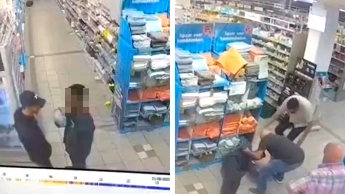 Naar verluidt spreekt een medewerker van de Albert Heijn Hoge Veld in Den Haag een man (*kuch*) aan die 'per ongeluk' iets in zijn mouw heeft laten verdwijnen, maar dat had 'ie achteraf beter niet kunnen doen. Deze #winkeldief heeft absoluut geen zin om aangehouden te worden en hoekt hem uit het niets naar de grond waar hij knock-out blijft liggen.