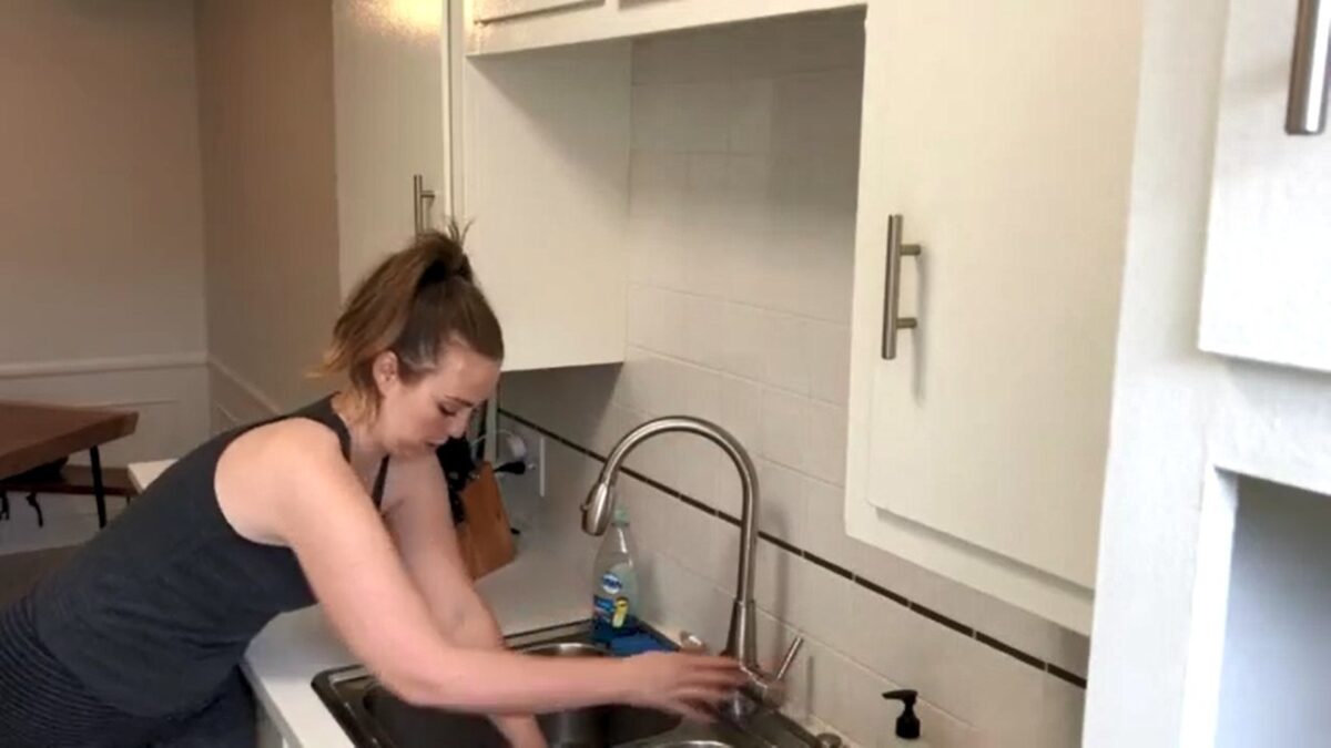 De SFW-versie van een vrouw die met haar hand vastzit in de gootsteen Fun