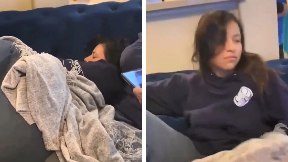 Ze dacht na 8,5 week buffelen even lekker op de bank uit te kunnen rusten, maar daar dachten haar lieftallige ouders blijkbaar anders over. Wakker worden!