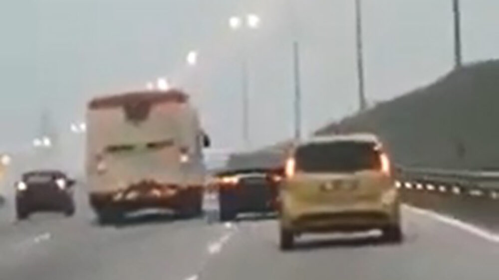Aso parkeert zijn auto verdienstelijk tegen de vangrails na idiote inhaalacties