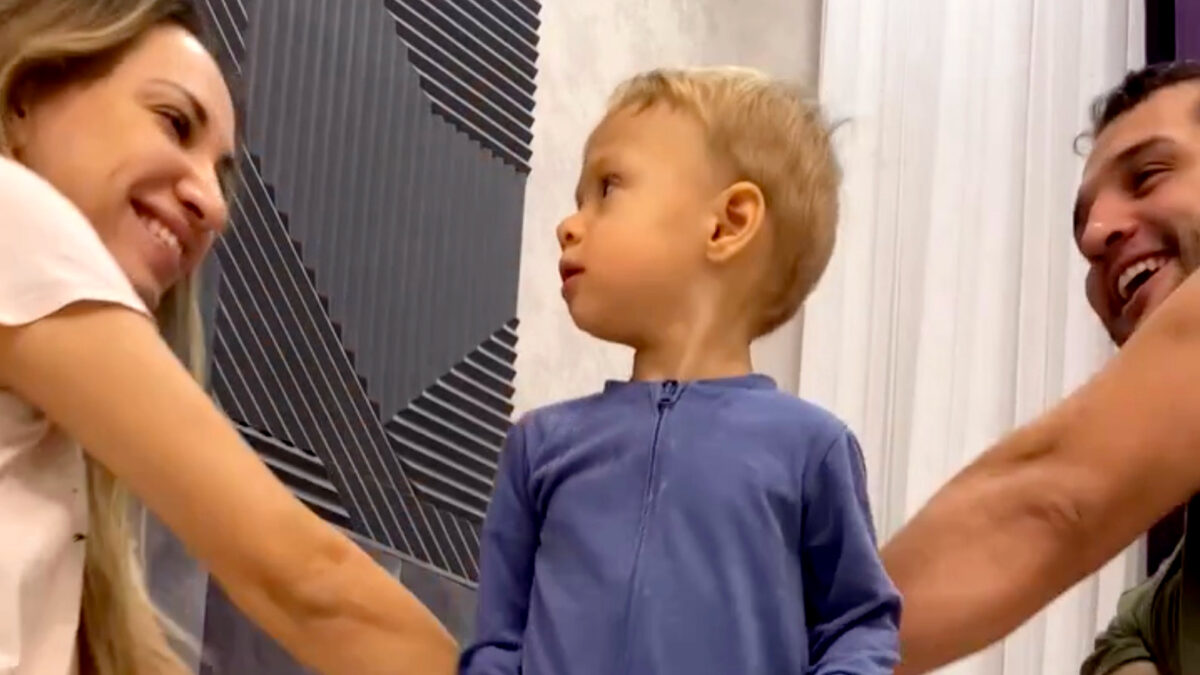 Je ziet hier twee ouders die gewoon even een leuk videootje willen maken dat ze op social media kunnen posten. Ik denk dat hun zoon ze dankbaar is.