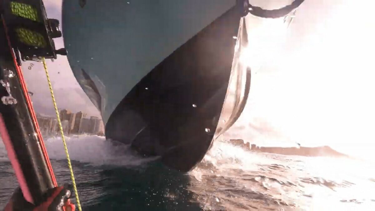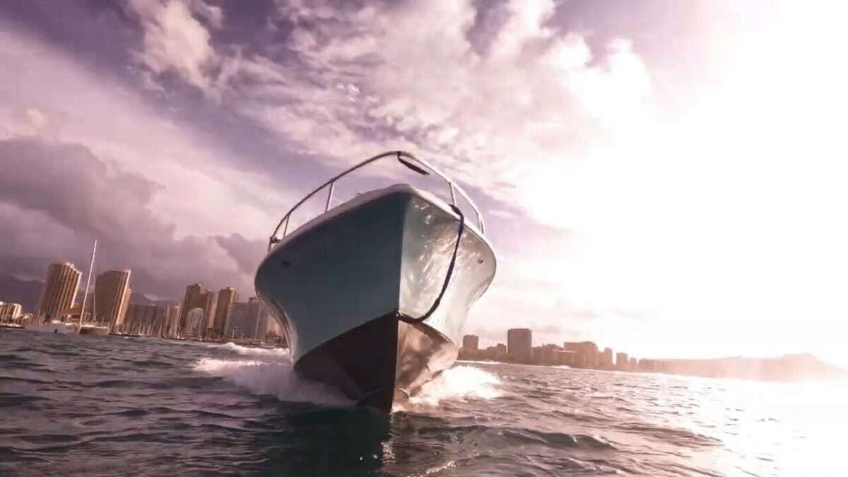 De close call van de dag komt uit het zonnige Hawaii als een speervisser nét op tijd weet te voorkomen dat hij een tegemoetkomende boot kopt. Prima reflexje hoor.