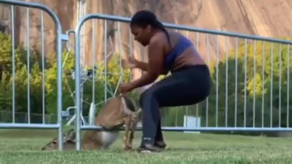 Vrouwelijke rambo probeert hertje te redden