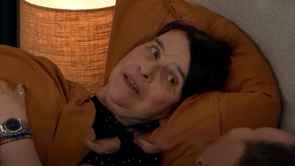 We hebben het niet gecontroleerd maar het zou ons niet verbazen als Theo zijn onderbroek al uit had toen hij bij Truusje in bed stapte, maar hij gooit eerst nog even een subtiel vraagje tussendoor om zijn kansen enigszins in te schatten.