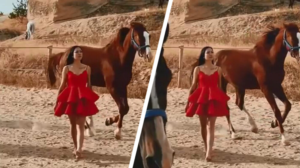 Door een kudde paarden lopen voor een fotoshoot, wat kan er fout gaan?