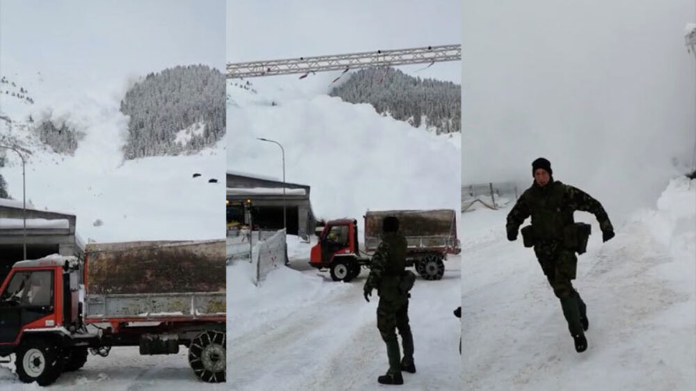 Zwitserse soldaten moeten rennen voor een enorme aanstormende lawine in Davos