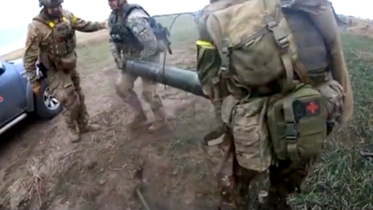 Deze Oekraïense soldaten kregen de taak om een mortier te verplaatsen, maar net toen ze begonnen met inladen landde er een (naar verluidt) Russische mortier naast ze. Wonderbaarlijk genoeg raakte niemand gewond en ging ze er onverrichter zake vandoor.
