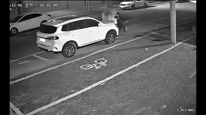 In China klapt een bejaarde vrouw op een driewieler tegen een aso die zonder licht over straat rijd... Hmm wacht eens even!