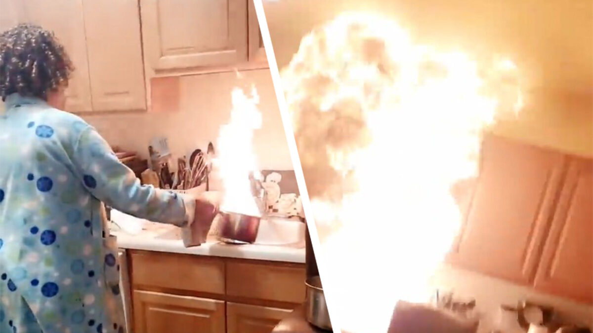 Moeder verpest kerst door water over pan met fikkende olie te mikken
