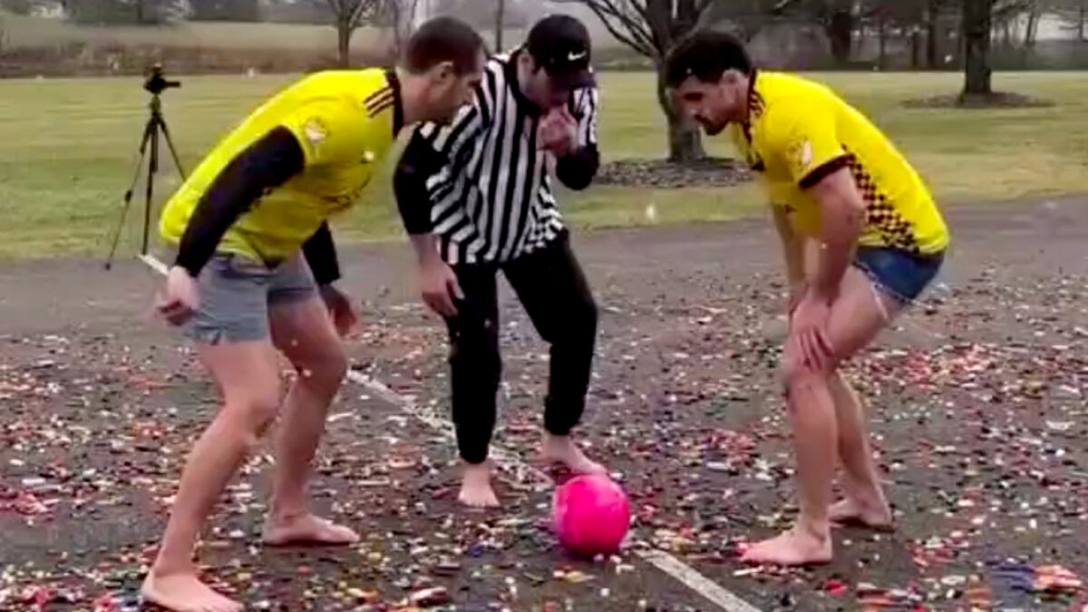 Als je echt helemaal niets meer weet om te doen ga je blijkbaar de gekste dingen verzinnen om jezelf enigszins bezig te houden. Doet iemand mee met een potje bowlingvoetballen op een LEGO-veld?