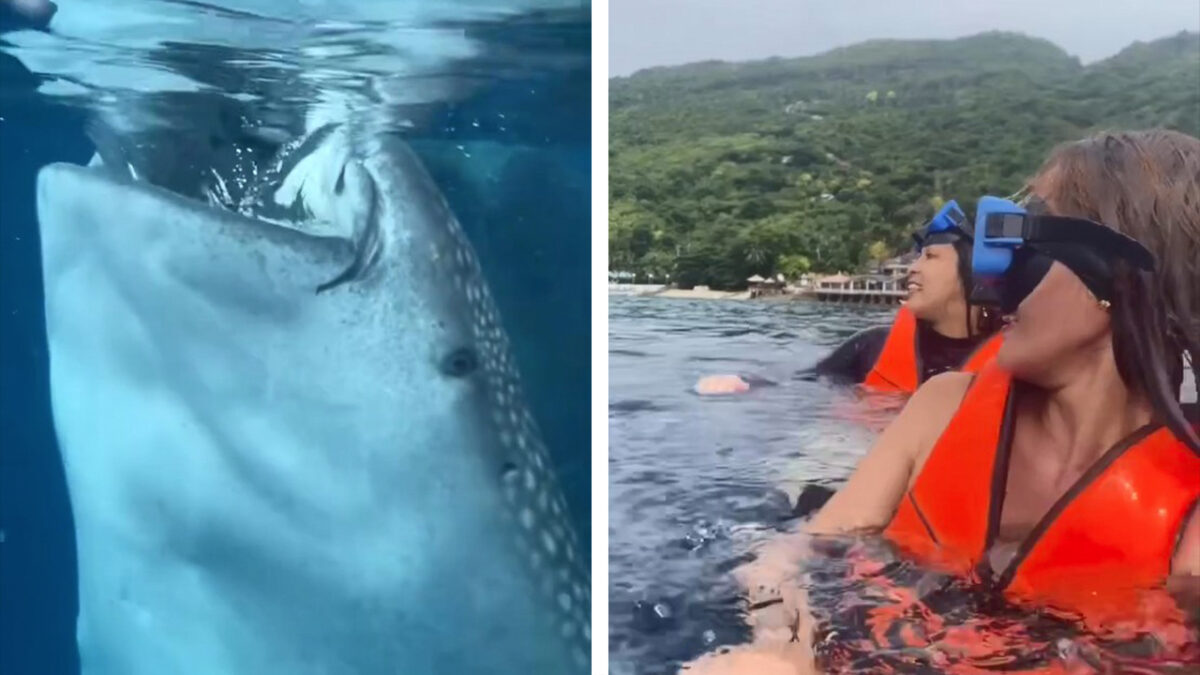 Gigantische walvishaai komt groepje zwemmers even gedag zeggen