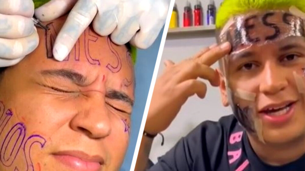 Toch wel ragrets: man die tatoeage van Messi op zijn voorhoofd zette heeft spijt