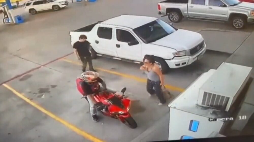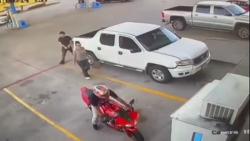 Bij een benzinestation ergens in Texas flipt een chagrijnige #Karen uit haar pannetje nadat een motorrijder iets te dicht naast haar parkeert. Als ze vervolgens haar klauwen niet kan thuishouden is de shit pas echt aan, maar daarbij is het vooral haar vriend die het moet ontgelden en al snel sterretjes ziet. Nu is het ook niet heel slim om een gevecht aan te gaan met iemand die een helm draagt.