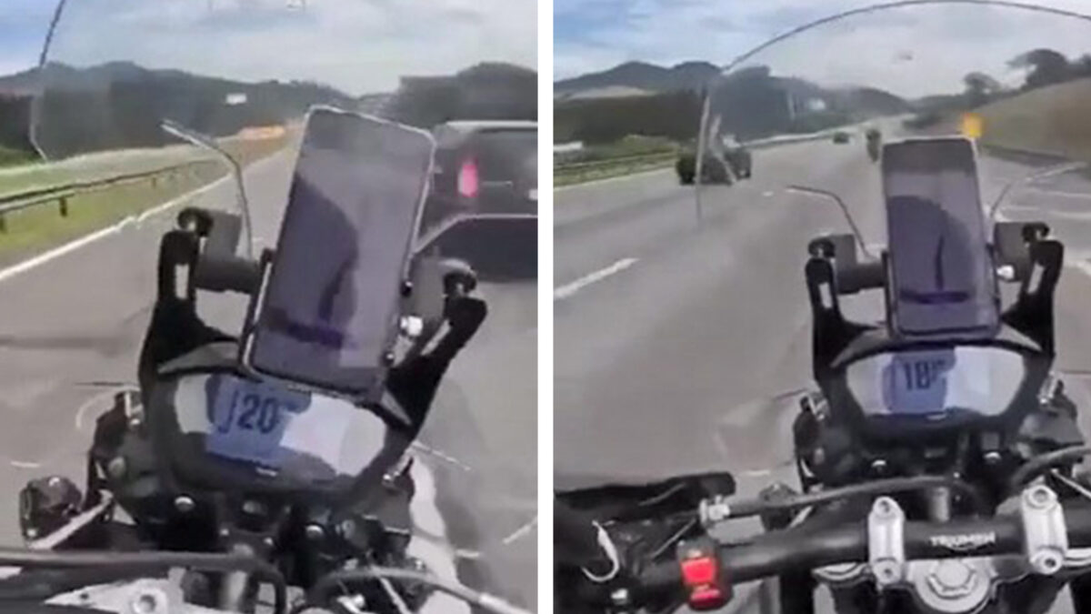Deze Braziliaanse snelheidsduivel jankt met 200 km/u over de snelweg als hij plotseling met een zogenaamde 'speed wobble' te maken krijgt en zijn stuur als een malle begint te klapperen. Hij gaat hard onderuit en schuift over het asfalt de berm in, maar houdt er slechts een vieze onderbroek aan over.