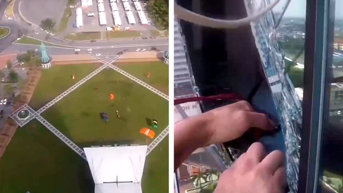 Niet veel mensen zullen tegenwoordig meer bijgelovig zijn, maar deze basejumper zal voortaan wel even 2x nadenken voordat hij op vrijdag de 13e van een gebouw jumpt.