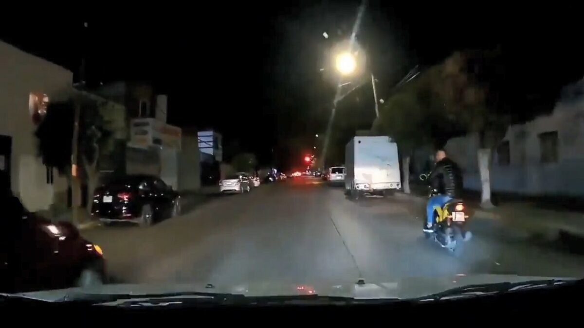 Afgeleide druktemaker ziet een geparkeerde bus over... tegen zijn hoofd Fails