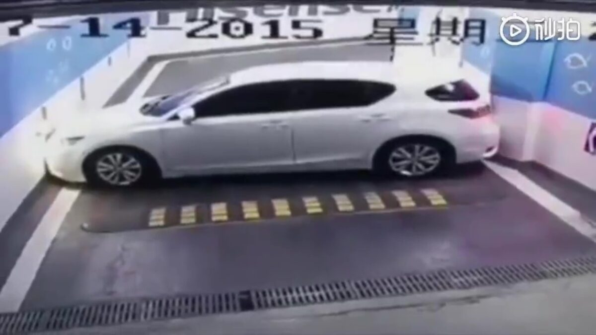 Idioot weet zijn auto muurvast in een parkeergarage te klemmen Fails
