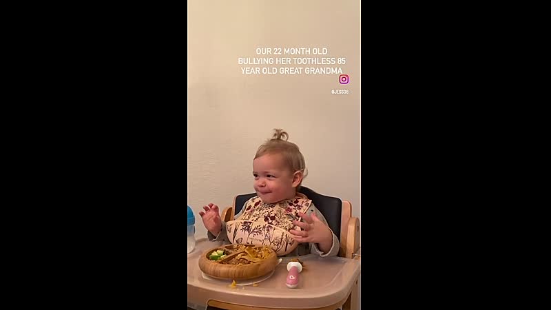 Bijna 2 jaar oud en nu al je oma heerlijk in het ootje nemen omdat ze nóg meer moeite heeft met kauwen dan jij. Die komt er wel!