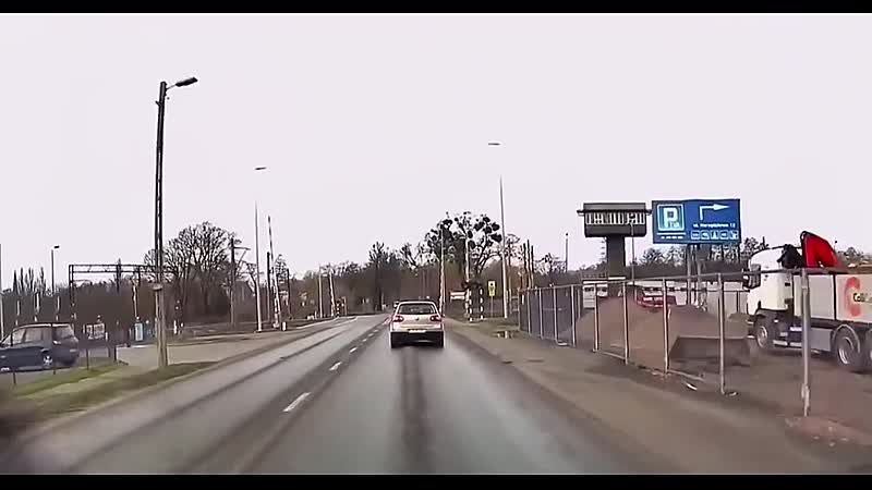 Instant karma voor vent die last minute over spoorwegovergang knalt