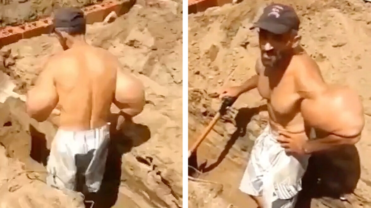 Je zult misschien denken dat dit weer zo'n achterlijke syntholspuiter is, maar niets is minder waar; het enige dat je moet doen om ook van die indrukwekkende spierballen te krijgen is stratenmaker worden! 💪😎