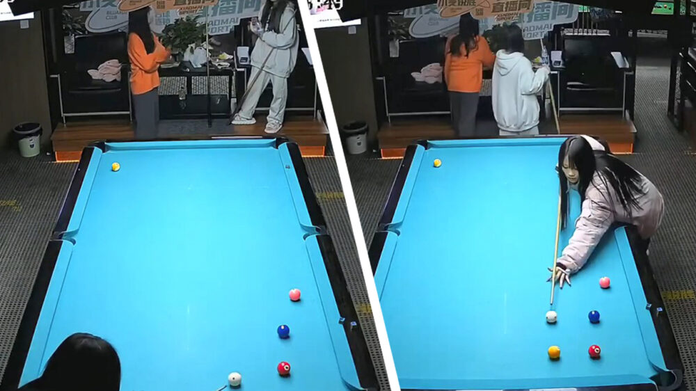 Tijdens een potje 9-ball in de kroeg geeft een poolprofessional een demonstratie aan haar BFF's. Haters zullen beweren dat het geluk is, maar wij weten wel beter.