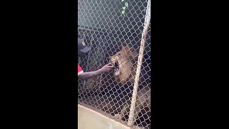 Net iets te stoere bewaker heeft meteen spijt van leeuwtje pesten voor toeristen