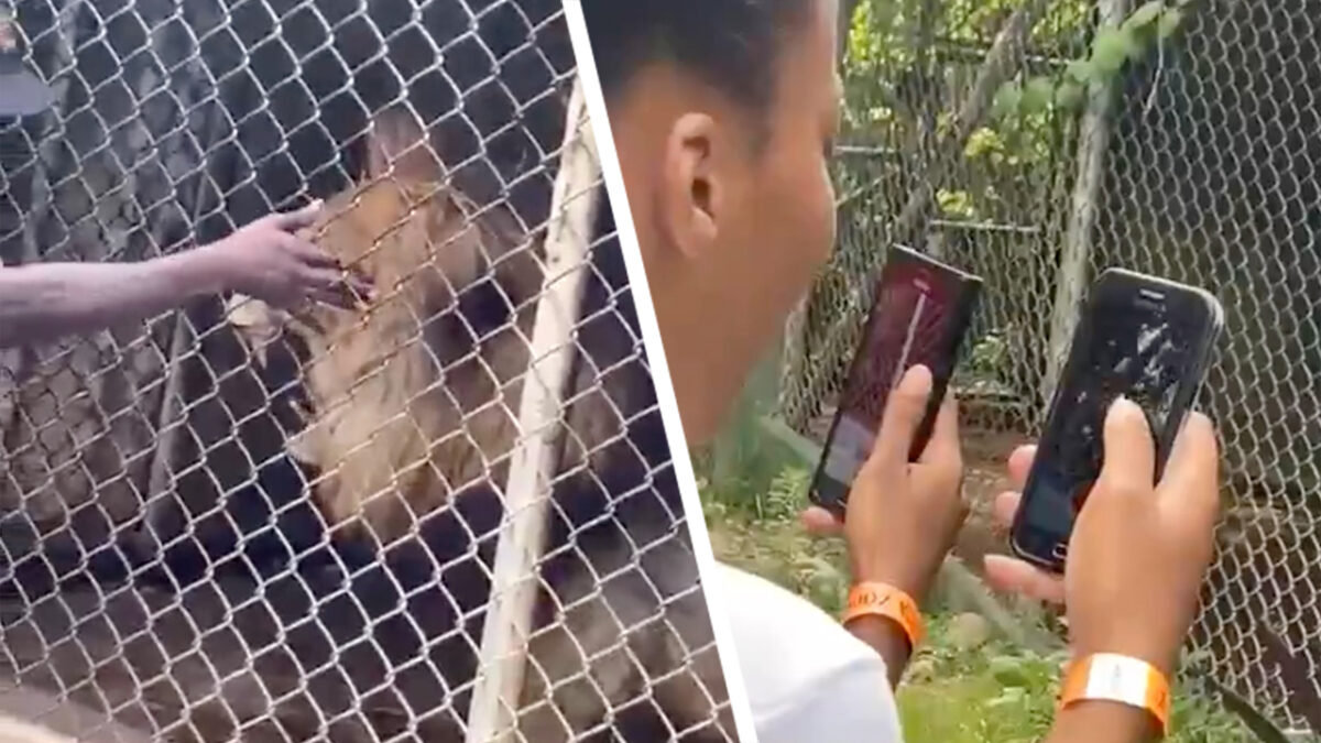 Net iets te stoere bewaker heeft meteen spijt van leeuwtje pesten voor toeristen