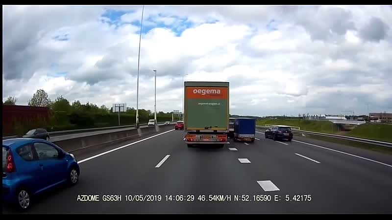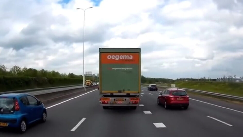 Zo ziet een harde aanrijding van achter er vanuit de vrachtwagencabine uit