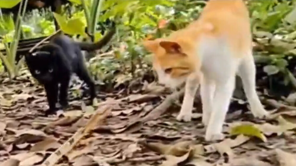 Slang probeert kat te intimideren maar dat pakte niet echt goed uit
