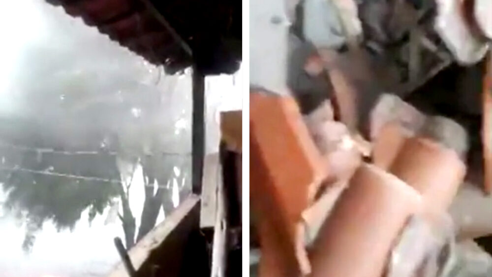 Tijdens een storm naar buiten gaan om de situatie te controleren is misschien niet het meest verstandige dat je kunt doen. Eén sterke #windvlaag en je had bijna het dak kunnen terugkoppen.