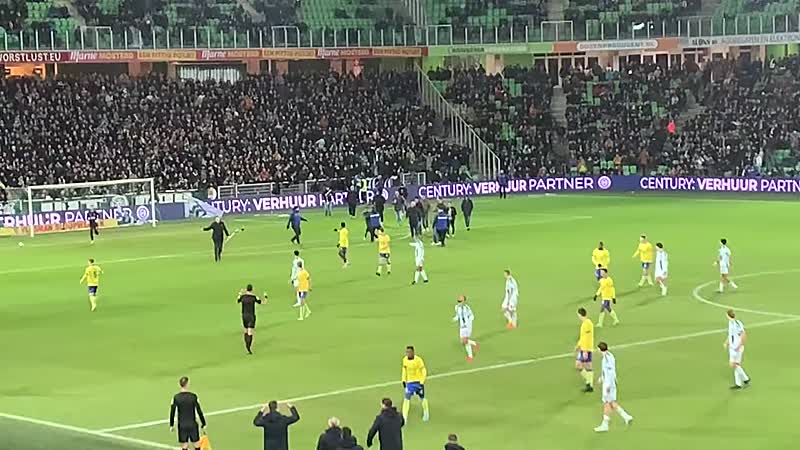 Het gaat klaarblijkelijk niet zo goed in De Euroborg, want in de wedstrijd tegen hun directe concurrent besloten #supporters het veld te bestormen. De 18e plek in de eredivisie en de 0-1 achterstand tegen Cambuur was blijkbaar genoeg voor ze dus besloten de boel maar voor iedereen te verpesten.