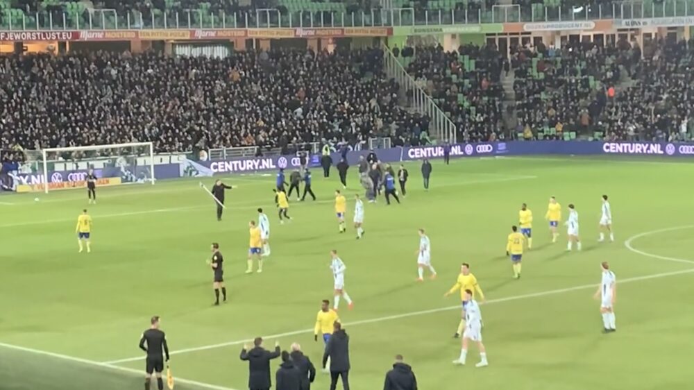 Wedstrijd FC Groningen en Cambuur stilgelegd nadat fans het veld bestormen