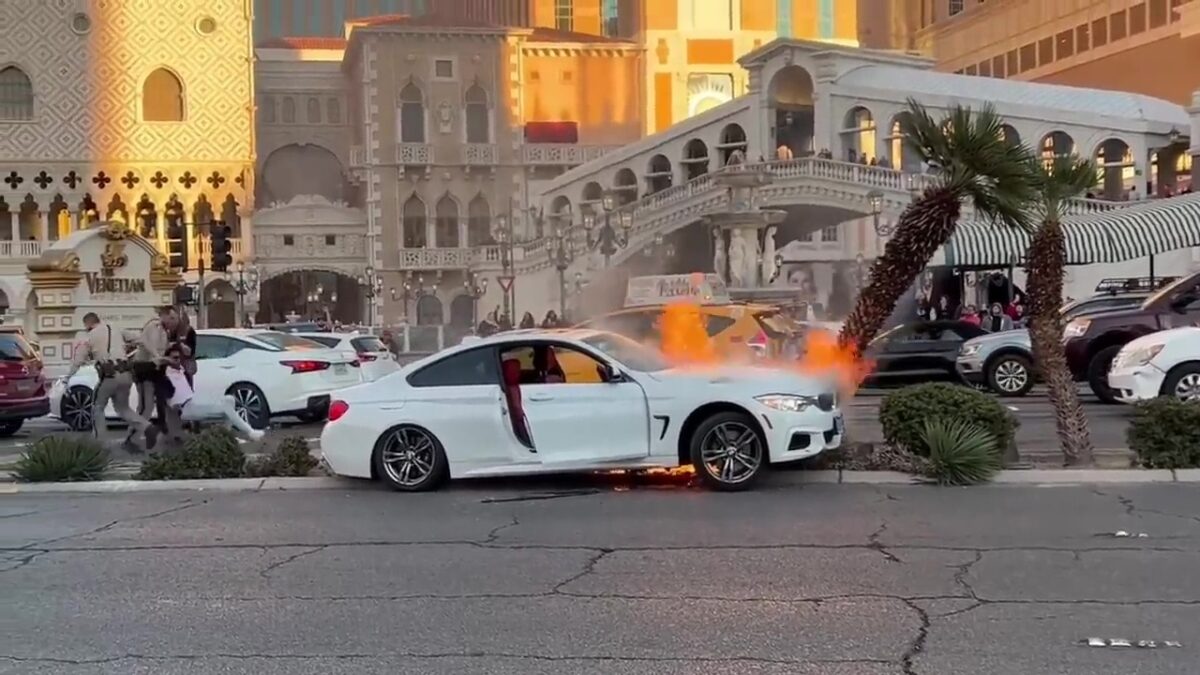 Close call: kerel wordt nét op tijd uit zijn brandende auto getrokken