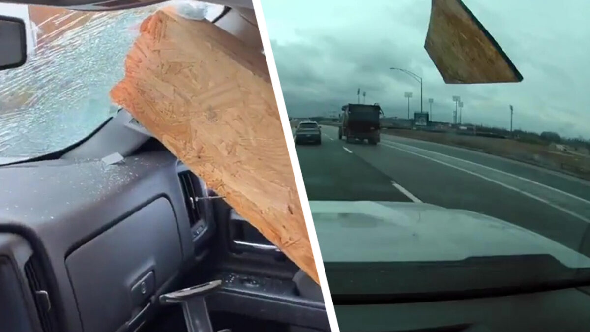 Was 'ie bijna een kopje kleiner dankzij een stuk hout dat dwars door z'n ruit vliegt