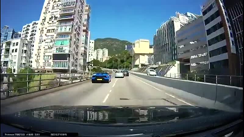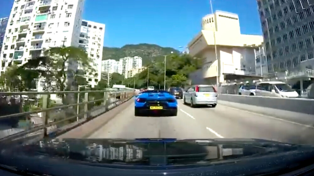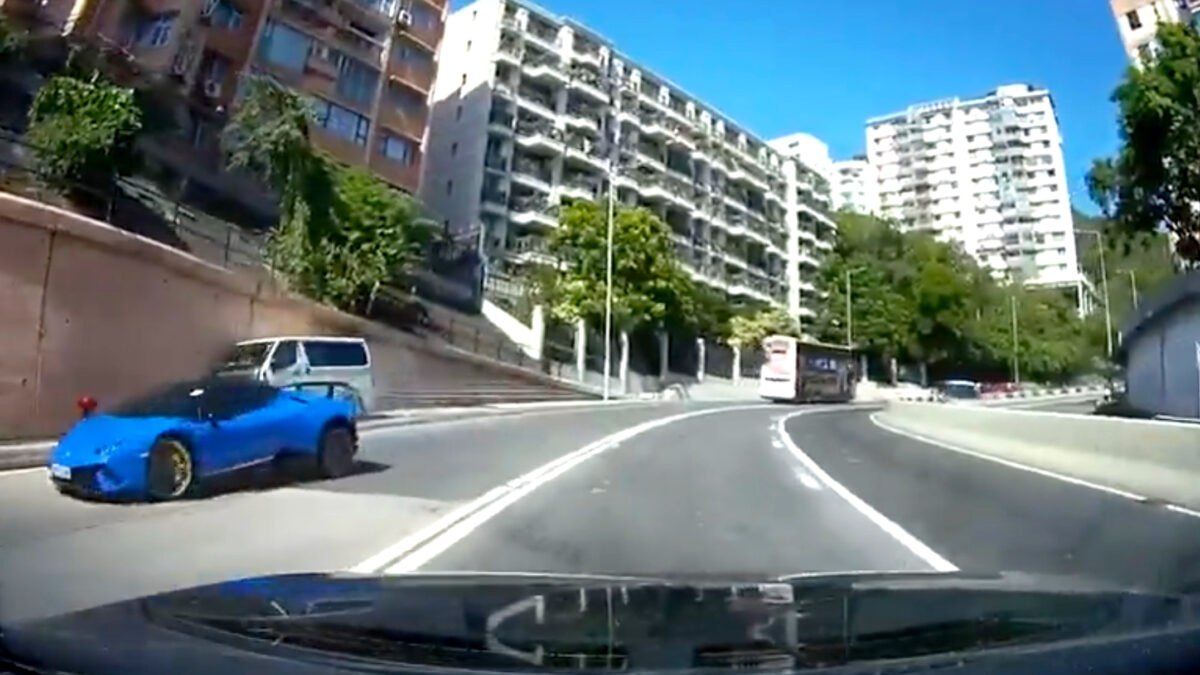 Incapabele muppet in een Lamborghini Huracán beukt minibusje van de weg