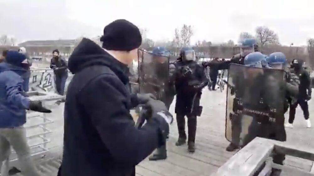 Franse protestant beukt met blote vuisten de oproerpolitie terug