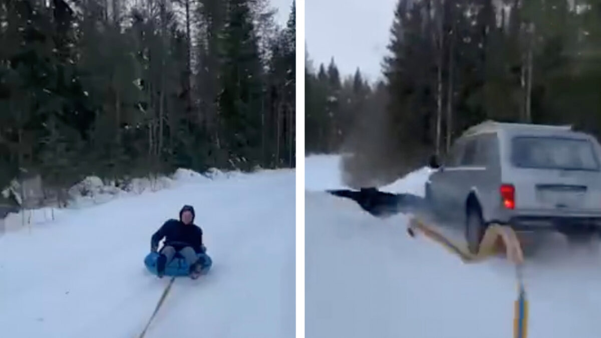 Kan gewoon: als het gesneeuwd heeft achter een auto hangen Fails