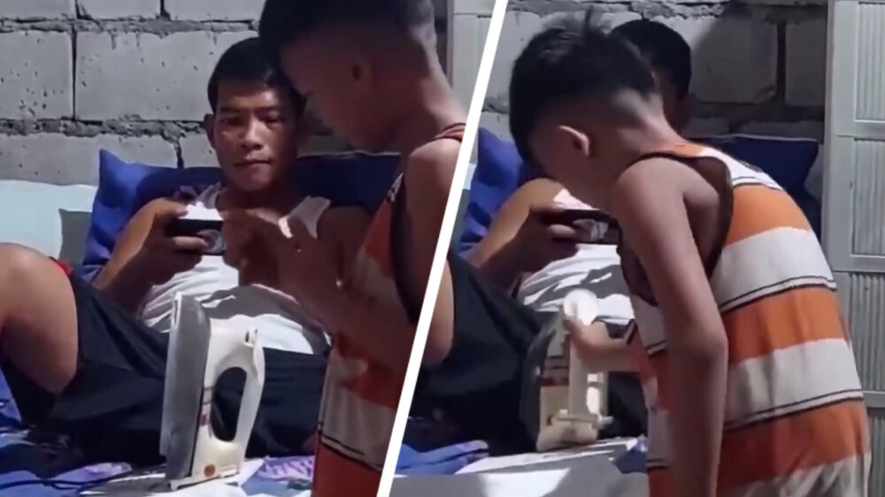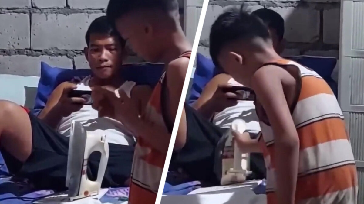 Als er iets is dat je niet graag in de buurt van je kruis wil hebben dan is het een gloeiend heet strijkijzer. Deze koter besloot zijn vader echter even de schrik van zijn leven te bezorgen.