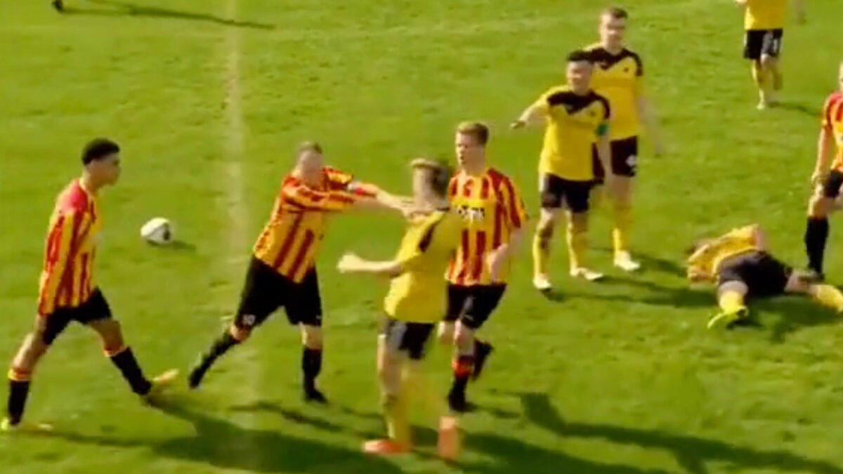Een lomp tackletje hier en daar zie je in de kelderklasse natuurlijk wel vaker voorbijkomen; de één noemt het fanatisme, de ander een gebrek aan skills. Ook in deze wedstrijd uit de oude doos wordt er links en rechts weer behoorlijk geschoffeld.
