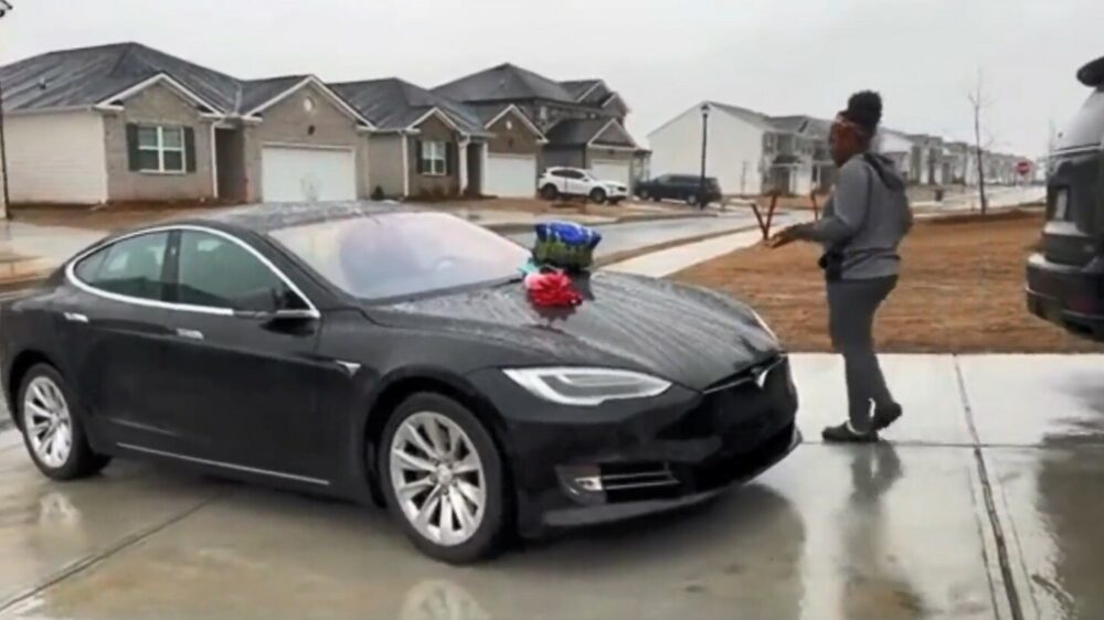 Een irritant kind is niet bepaald dankbaar als ze een Tesla voor haar Sweet Sixteen krijgt. Het enige waar ze om had gevraagd was een roze Mercedes en dan krijgt ze dit. Laten we hopen dat dit nep is...