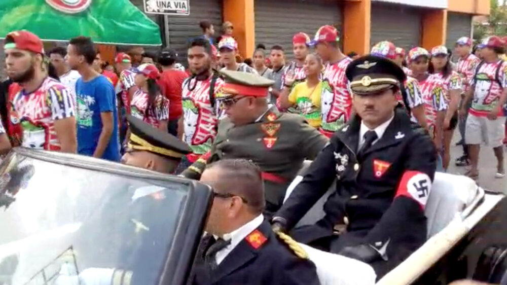 Waar je hier tegenwoordig 33x moet nadenken of je met je carnavalskostuum niet toevallig de buurvrouw van je ex-stiefmoeders tante beledigt, kun je in (waarschijnlijk) Brazilië nog gewoon als Adolf Hitler in een open wagen over straat.