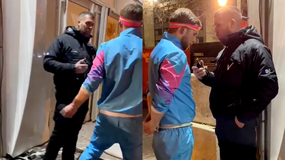 Vriend, wil je eerst even op deze walkie talkie blazen voordat je naar binnen gaat