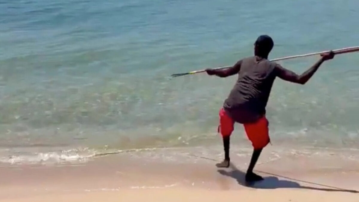 Urenlang aan de waterkant naar je dobber staren? Daar heeft toch niemand de tijd voor, gewoon je speer pakken en smijten met dat ding!