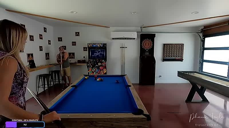Twicher Phoenix Taylor laat iedereen meegenieten tijdens het biljarten
