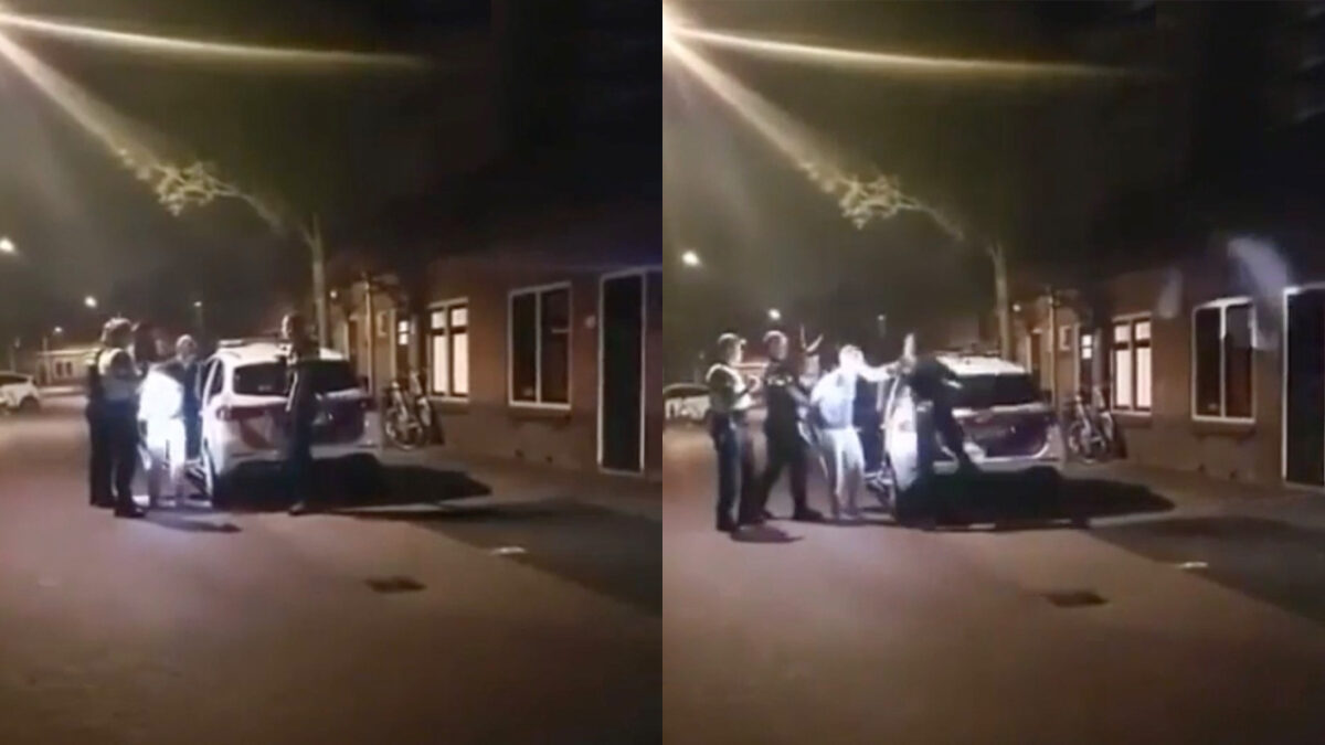 De wie, wat, waar en vooral waarom is bij deze ingezonden video niet bekend, maar dat verdachte er niet echt blij mee was blijkt wel uit zijn lama-achtige trekjes waarbij hij het nodig vindt om een politieagent onder te tuffen. Corrigerende tik incoming...