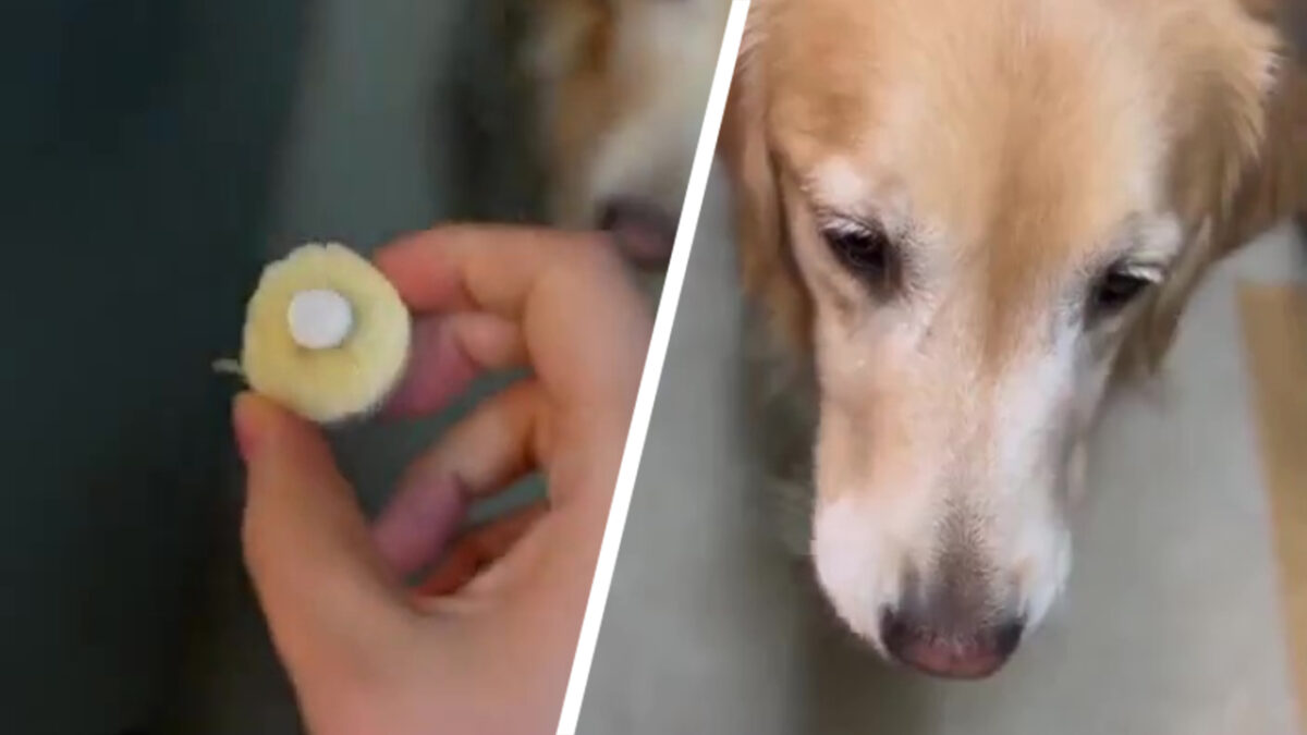 Iedereen die zijn huisdier al eens medicijnen heeft moeten geven weet dat dat vaak geen makkelijke opgave is en deze hond demonstreert dat even vlekkeloos.