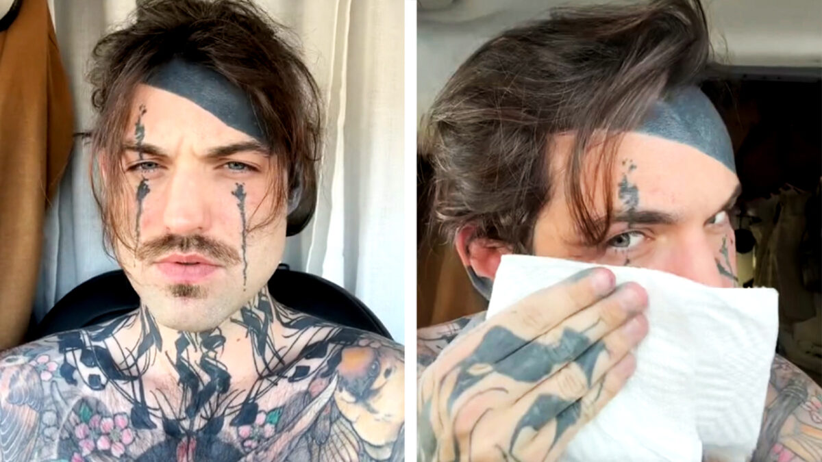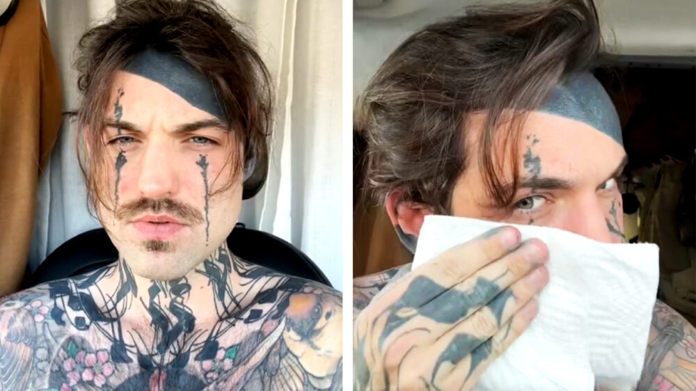 Sean Gatz voorziet zichzelf van een aantal nieuwe gezichtstatoeages